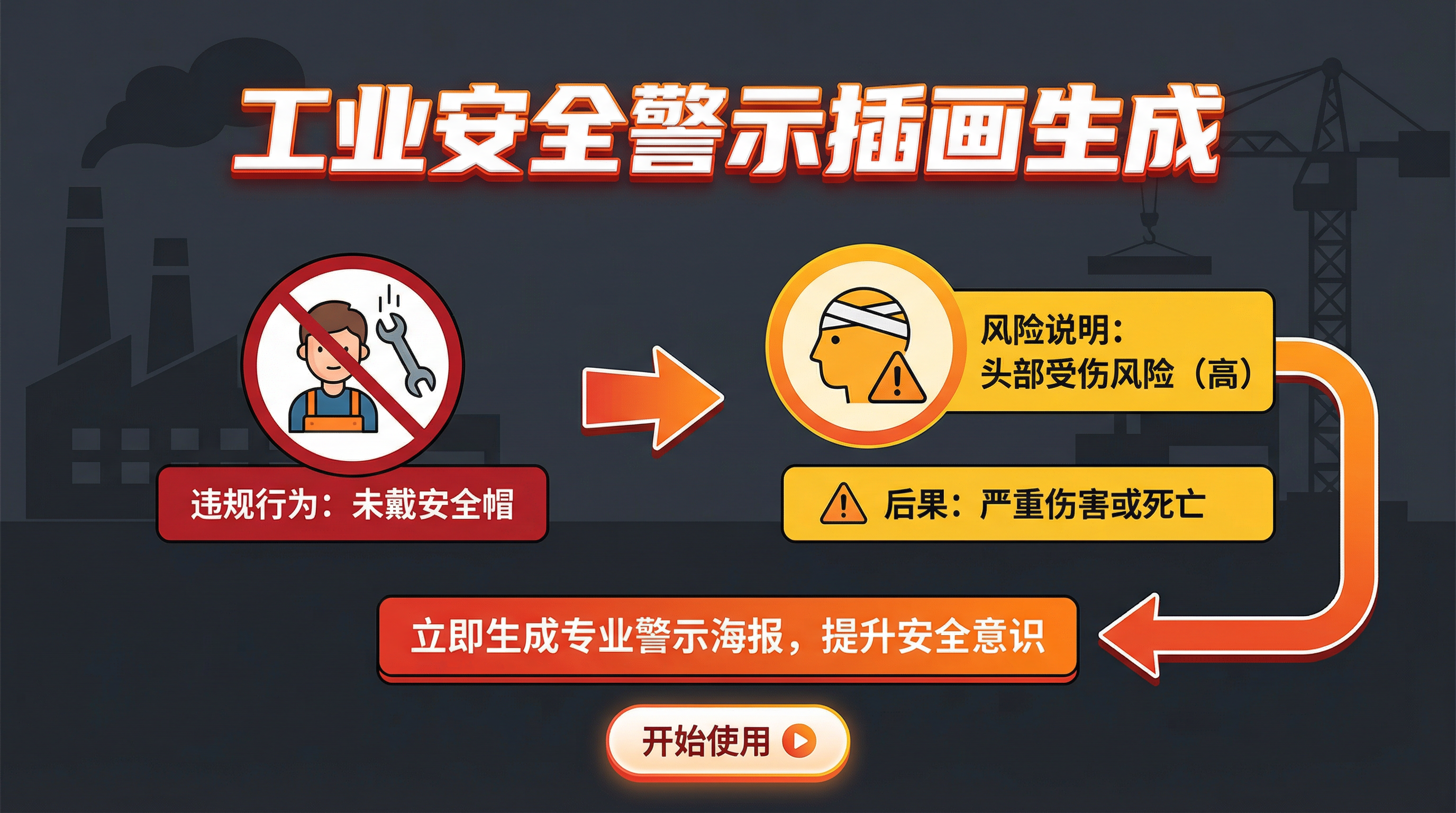 工业安全教育插画、企业级安全培训海报、管理视角、安全咨询级别视觉表达