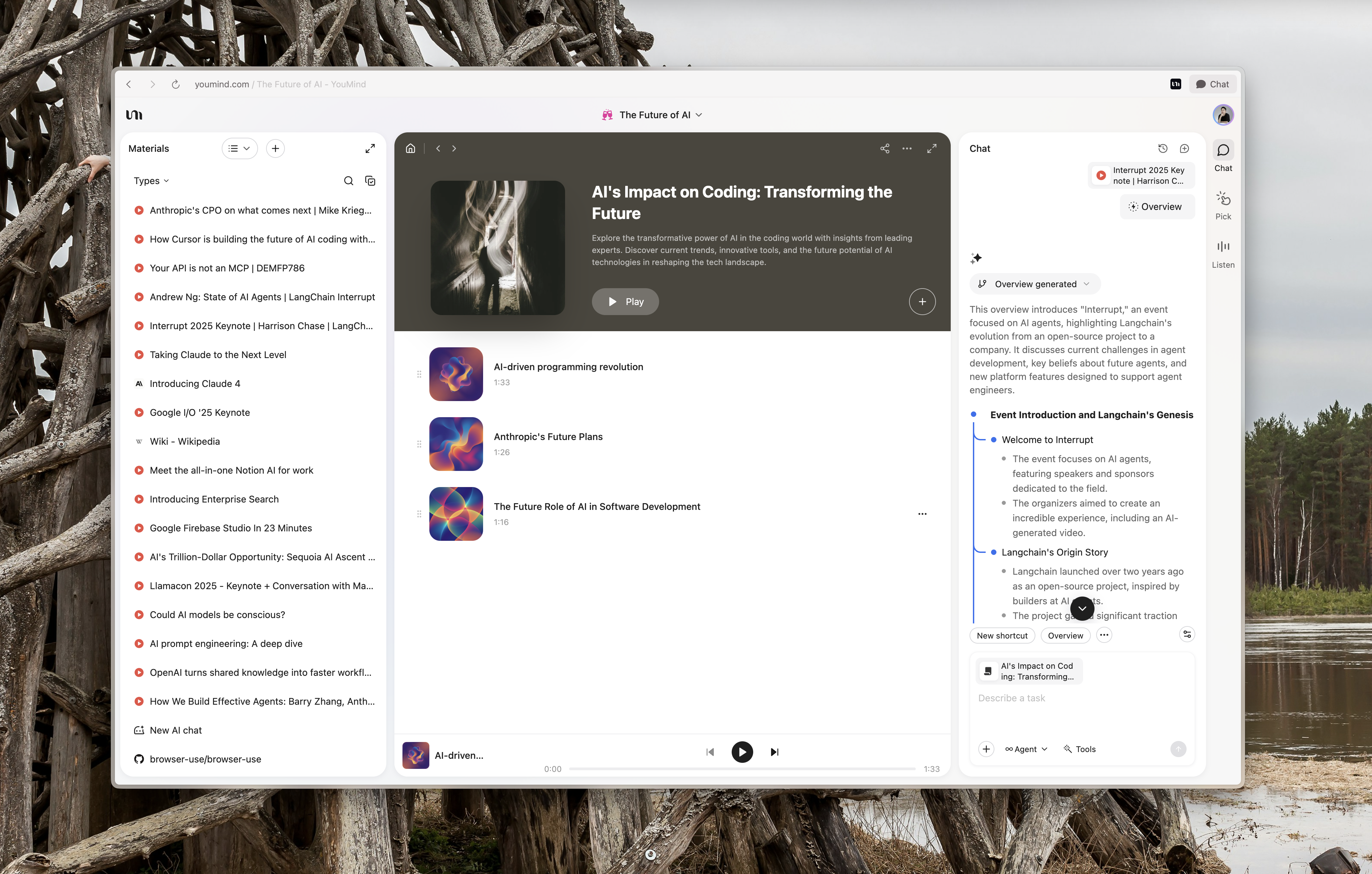 Wählen Sie einfach verschiedene Materialien in Ihrem Board aus, wählen Sie Ihren bevorzugten Stil und Ihre Stimme, fügen Sie spezifische Anfragen hinzu und klicken Sie auf Generieren. Sie können im Laufe der Zeit immer mehr Inhalte hinzufügen und so eine thematische Audiosammlung zu jedem Thema aufbauen.