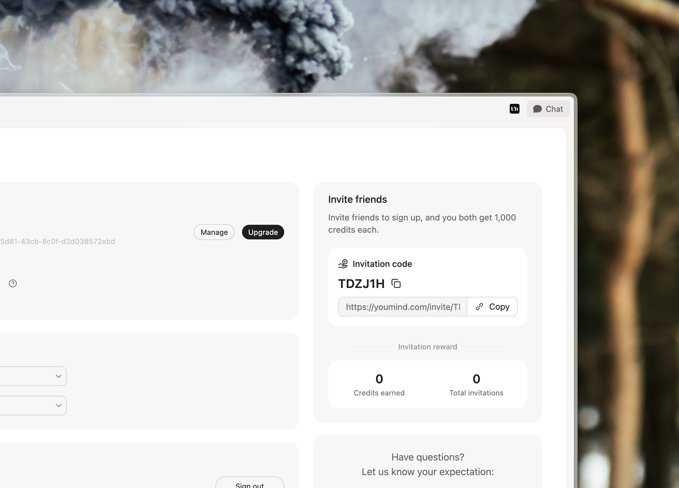 Wenn sich jemand über Ihren Einladungslink anmeldet, erhalten Sie beide1.000 Credits. Je mehr Leute Sie einladen, desto mehr Credits verdienen Sie. Verwenden Sie diese Credits für Forschung, KI-Schreiben, Bildgenerierung und alles andere in YouMind.