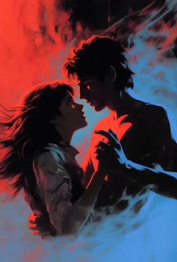 Palomas volando a través del escenario con lluvia roja al estilo de los videos musicales de The White Stripes