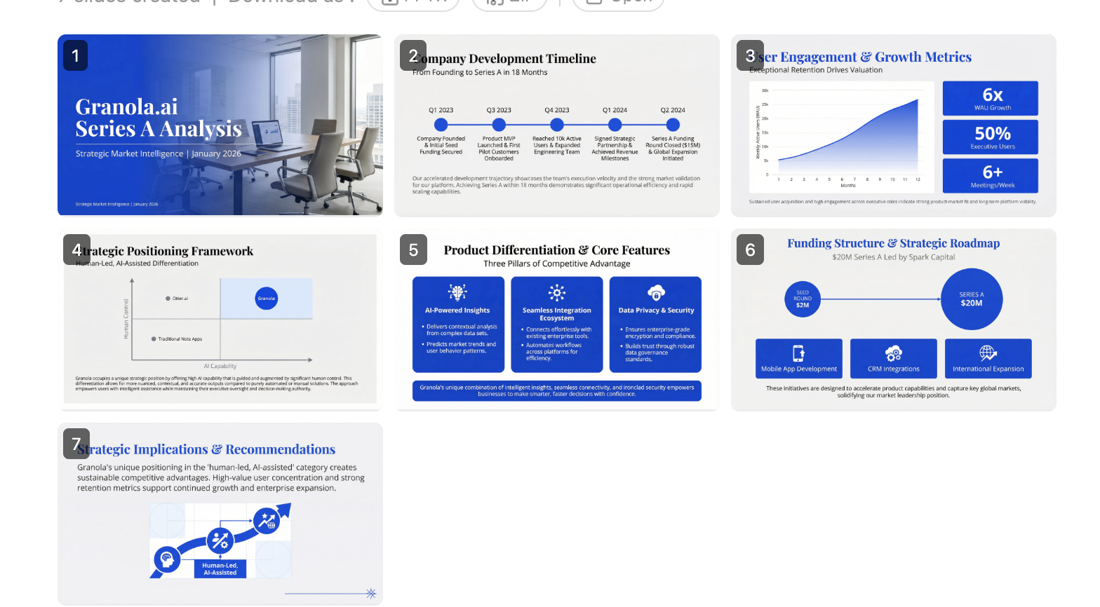 Transforma datos y contenido sin procesar en presentaciones impecables y listas para ejecutivos con un diseño profesional. Esta habilidad destaca por sintetizar información compleja en diapositivas claras y visualmente equilibradas, perfectas para informes de inteligencia empresarial y reuniones importantes. Aprovecha su estética corporativa moderna y concéntrate en las ideas clave para impresionar a cualquier audiencia.