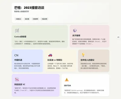 像专业分析师一样,将复杂财报数据(需要用户先提供公司财报文档)转化为精美HTML5报告。一键生成可视化、深度的公司业绩分析网页,告别手动排版。