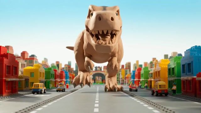 Cinematic Claymation T-Rex Stomping Through a LEGO City