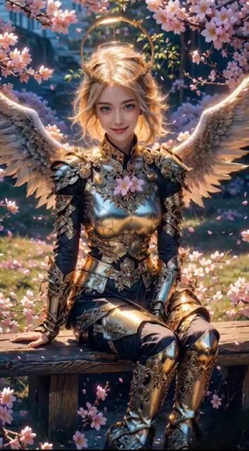 Angel Warrior in Cherry Blossom Garden Video Prompt