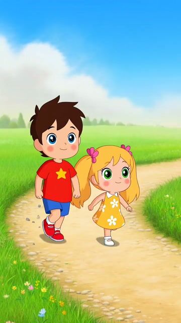 A video generation prompt for Grok Imagine requesting a video in chibi art style featuring two kids walking on a pebbled path, then sitting in a chibi car to move around after 10 seconds.