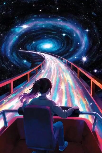 Girl on Roller Coaster Traveling Galaxy Video Prompt
