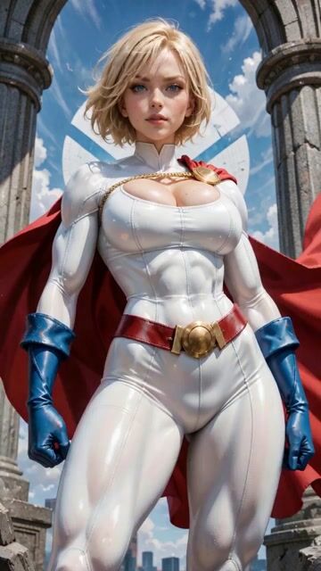 A prompt for Grok Imagine to generate a video featuring Power Girl, likely in an AI art style, referencing DC Comics.