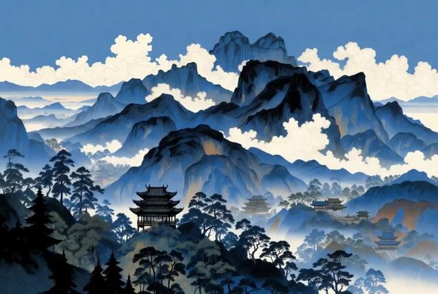 Chinese style mountains video prompt