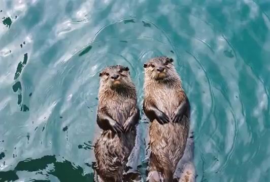 Calm, organic movement video prompt of otters