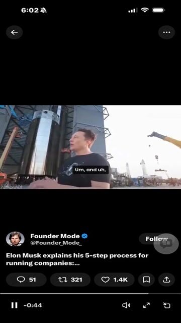 A Grok Imagine video generation prompt presenting a concise and powerful version of Elon Musk's 5-step efficiency method, emphasizing the correct order of steps.