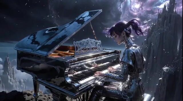 A prompt for generating a video where a subject plays the piano and sings a personalized two-part greeting, including a specific timing pause and a smile.