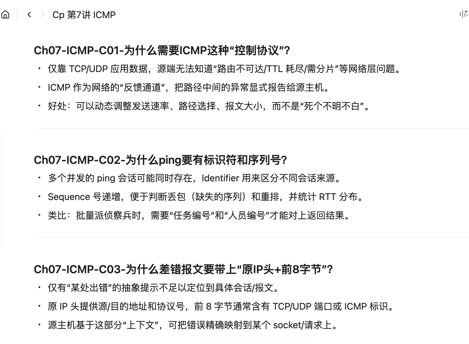 - 每条卡建议有一行“记忆抓手”,帮助联想(如:“看到封装,就想到 MTU 问题。”)。