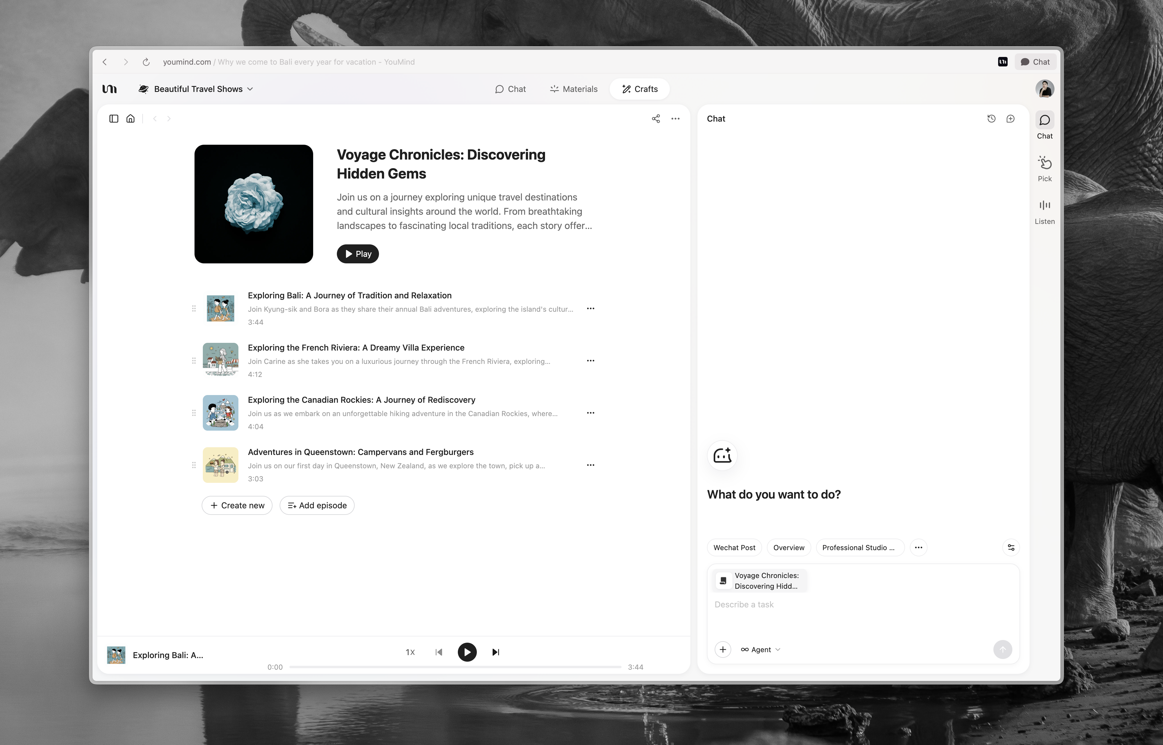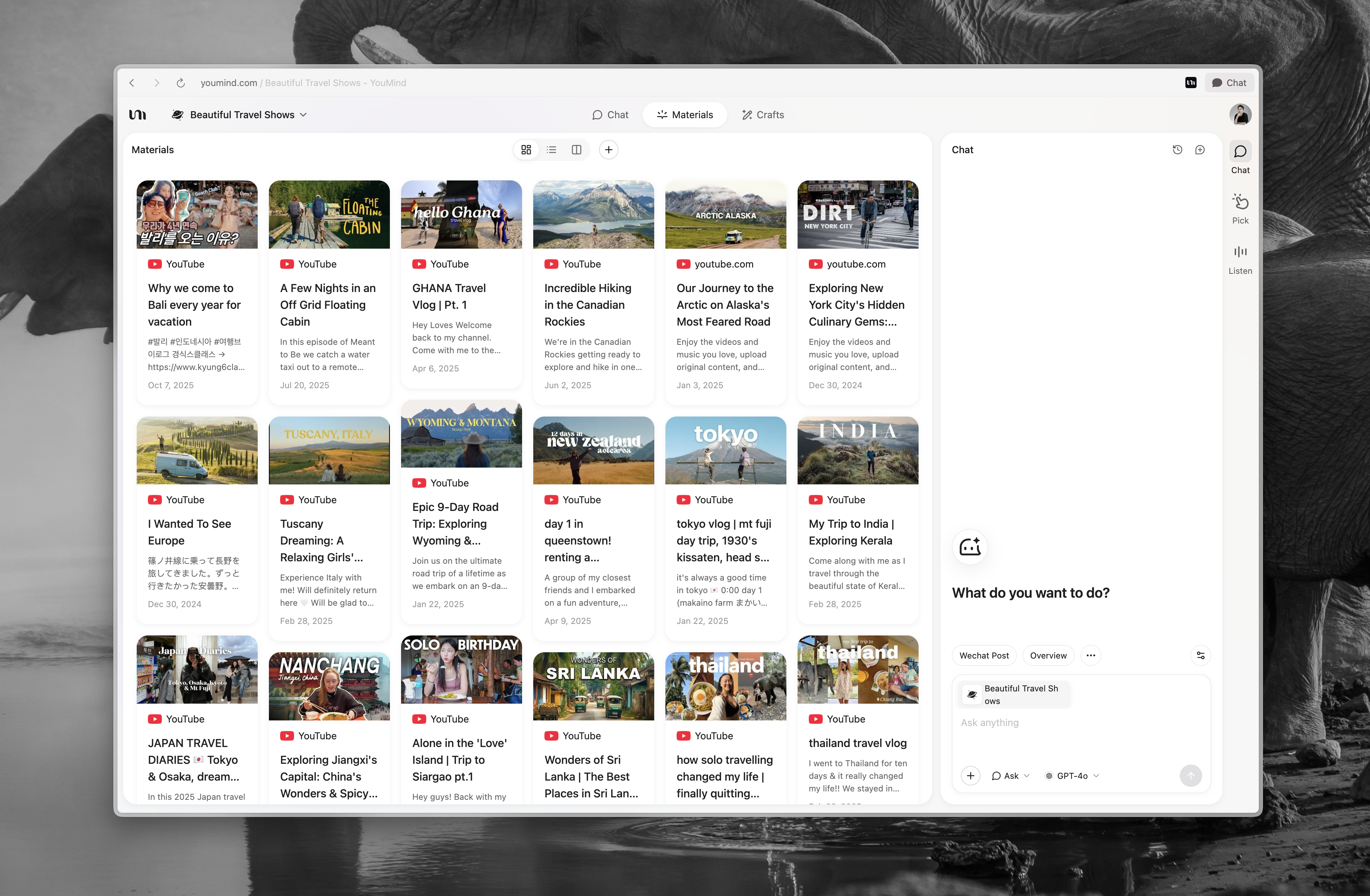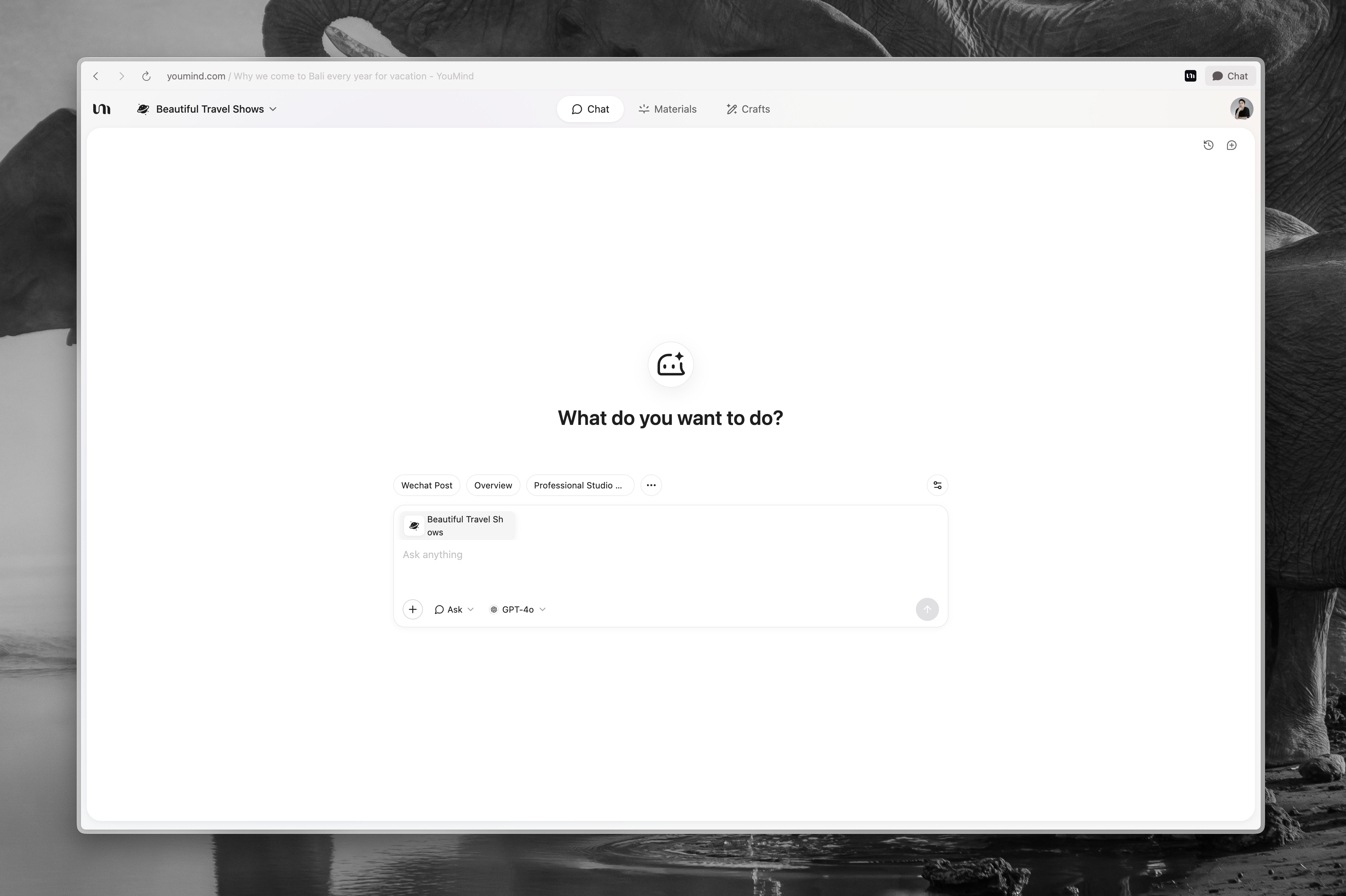 Un altro cambiamento importante è che abbiamo portato la Chat in primo piano. Ora potete avviare una conversazione con l'AI anche in una Board vuota senza materiali e senza Crafts. Da lì, potete chiedere all'AI di aiutarvi a strutturare lo spazio, riempire i contenuti e persino eseguire una serie di azioni sulla Board. La nostra speranza è che questo renda molto più facile iniziare, in modo che semplicemente parlare con l'AI sia sufficiente per avviare cicli di pensiero e creazione insieme.