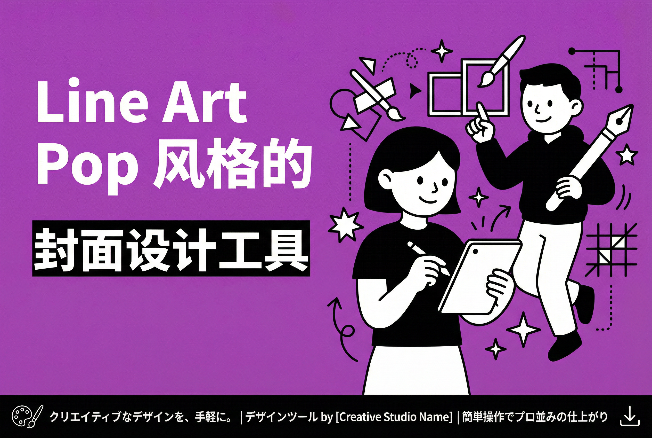 线条艺术: 使用粗壮、大胆、统一的黑色轮廓线。