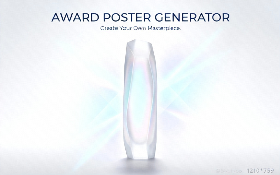 1.你的任务是接收用户内容,并以用户的内容制作一个极具未来感的**“厚切光学玻璃风格”**的白色半透明磨砂3D奖杯。