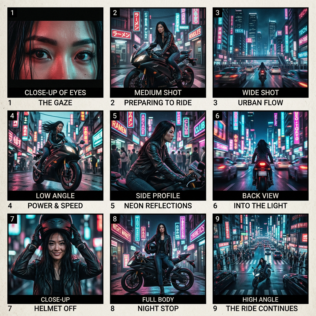 Esta habilidade visa transformar sua inspiração criativa em uma série de storyboards visualmente consistentes e de nível profissional para humanos virtuais gerados por IA. Seja você um criador de conteúdo, designer ou entusiasta interessado em desenho por IA, você pode facilmente produzir conteúdo narrativo visual de alta qualidade com esta ferramenta. Basta fornecer um tema de inspiração, como "um garoto cyberpunk passeando pelas ruas de Tóquio", e a habilidade irá guiá-lo na definição das principais características visuais do personagem, garantindo consistência nas feições e no estilo em todas as imagens geradas. Em seguida, ela criará nove storyboards com lógica narrativa ou variações de ritmo visual, abrangendo diversos tipos de planos, iluminação e atmosfera de sombra consistentes e detalhes ricos em cada cena. Esta habilidade apresentará uma descrição em chinês de cada storyboard, juntamente com os respectivos prompts em inglês (otimizados especificamente para modelos de desenho por IA). Por fim, você receberá um resultado completo, incluindo uma tabela de pontos de ancoragem do personagem, uma lista dos nove storyboards estruturados, uma seção para facilitar a cópia de todos os prompts e um conjunto de prompts negativos gerais para ajudá-lo a aplicá-los diretamente à geração de imagens por IA e concretizar rapidamente suas ideias visuais.