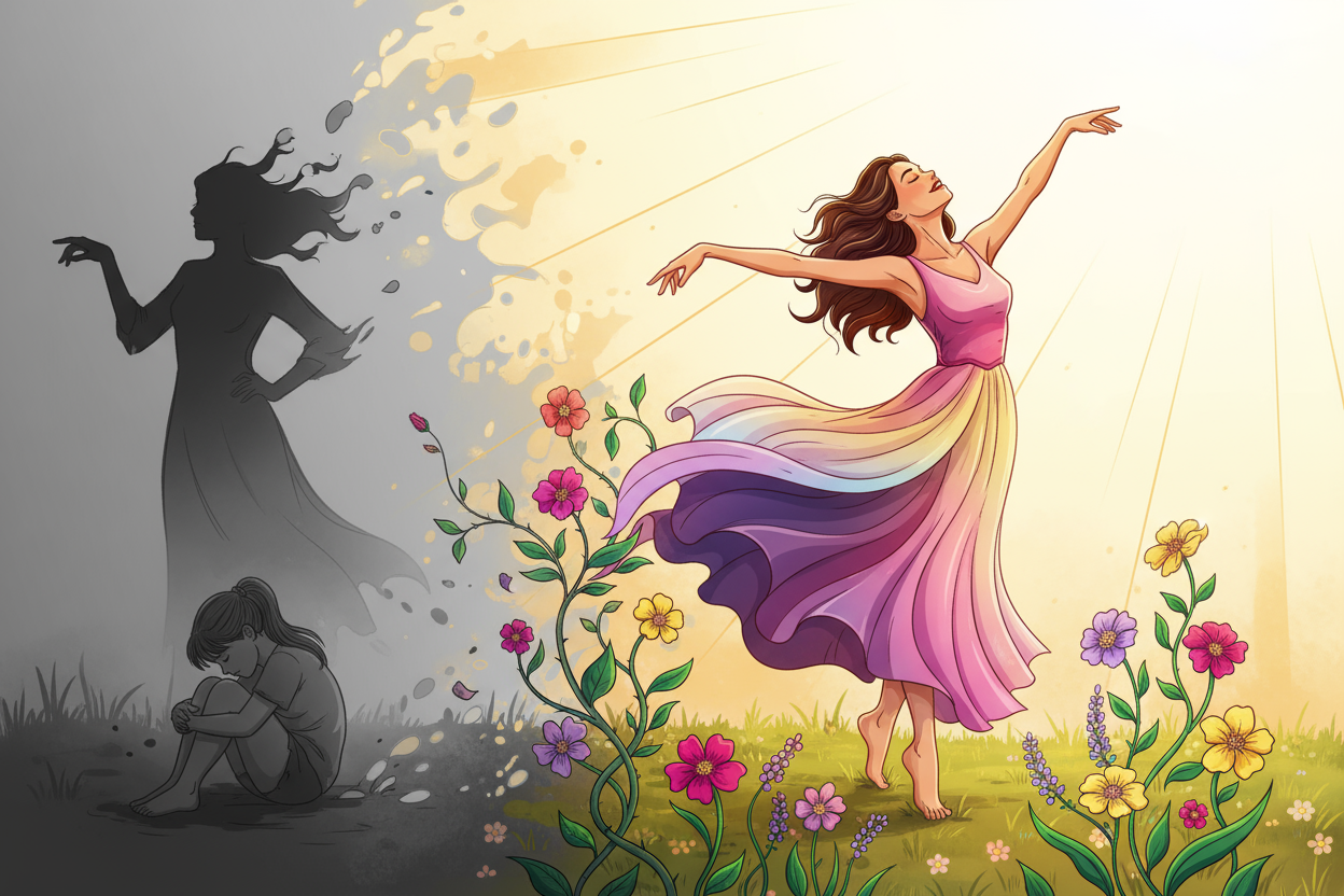 Understand the meaning of this life story and express it through abstract, visual language. Create drawing prompts that aim for a simple, elegant composition.