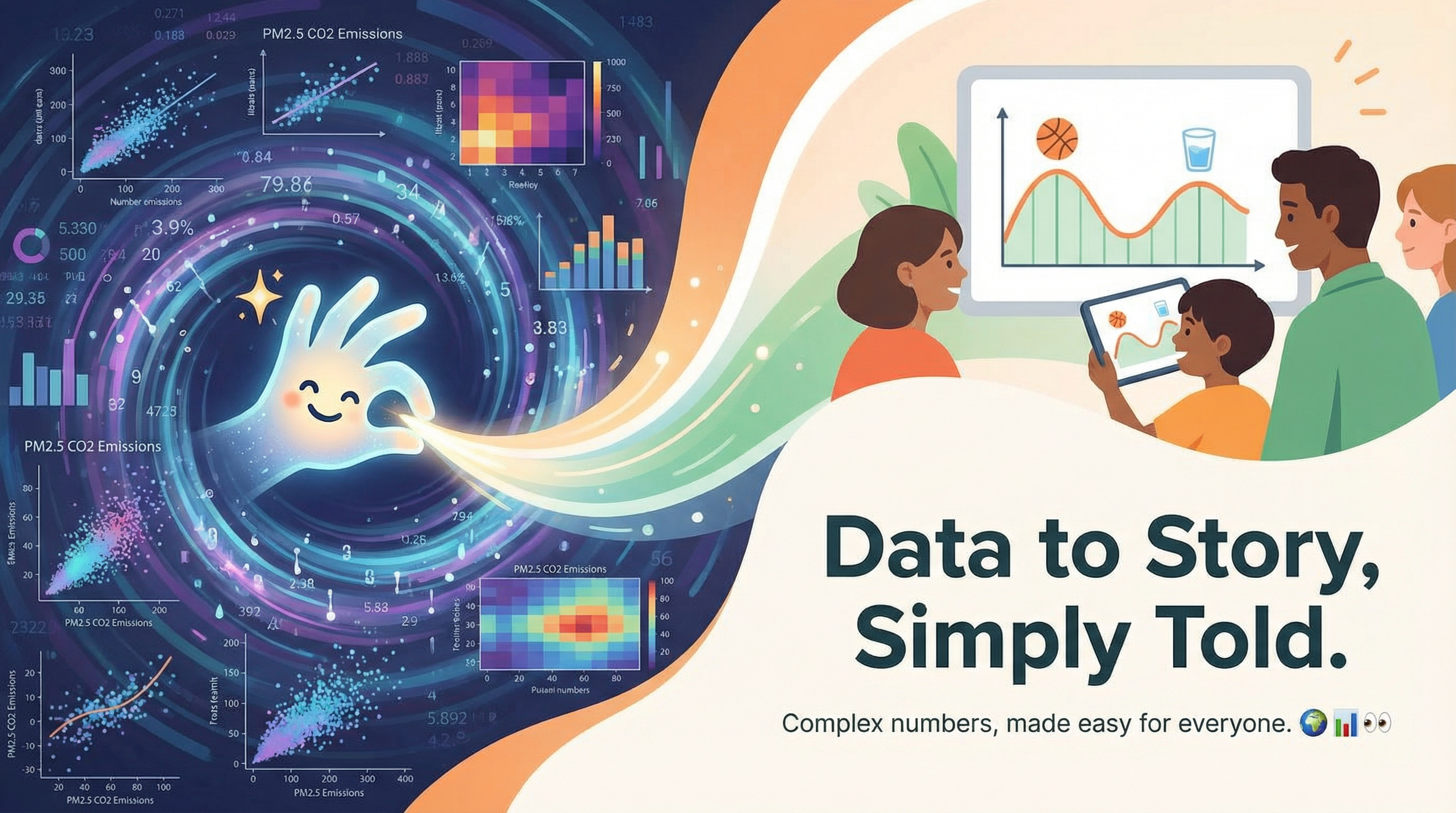 请用户提供具体的科普类数据(可描述数据主题、核心指标、大致数值范围等),你将基于上述要求完成故事化可视化方案设计。