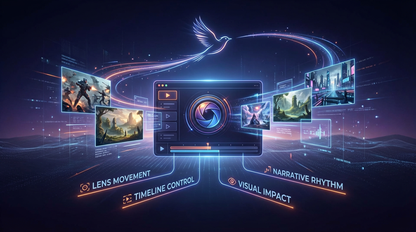 - 精确镜头语言:推近、拉远、环绕、俯冲、仰拍、特写