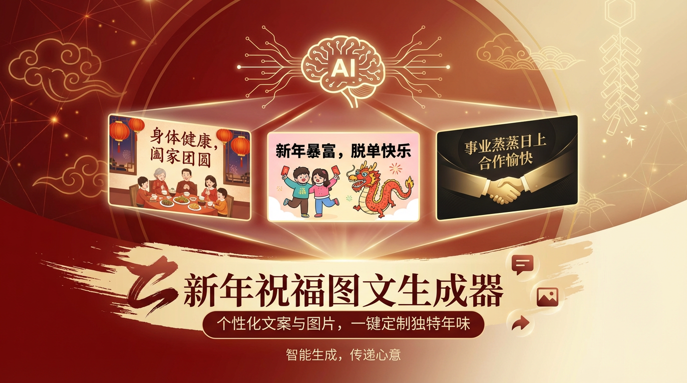 Instantly customize your own New Year's greetings! Whether it's for family, friends, or clients, you can generate unique text and beautiful images to make your wishes stand out.