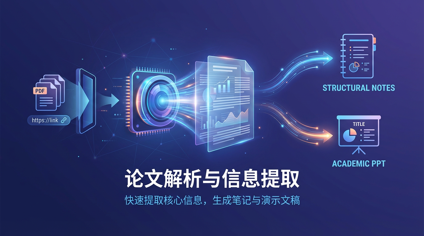 读取用户提供的学术论文(PDF 或 URL),进行深度解析,提取所有关键信息,为后续生成笔记和 PPT 做准备。