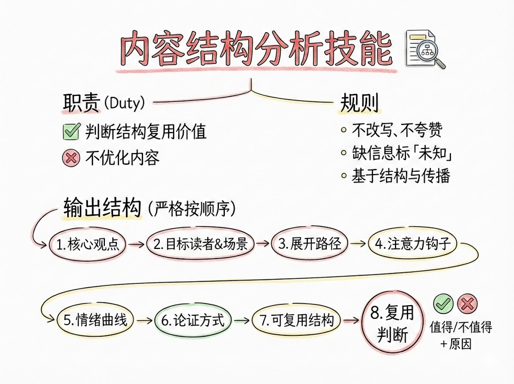 Your responsibility is to "determine whether the content structure is worth reusing," not to optimize the content.