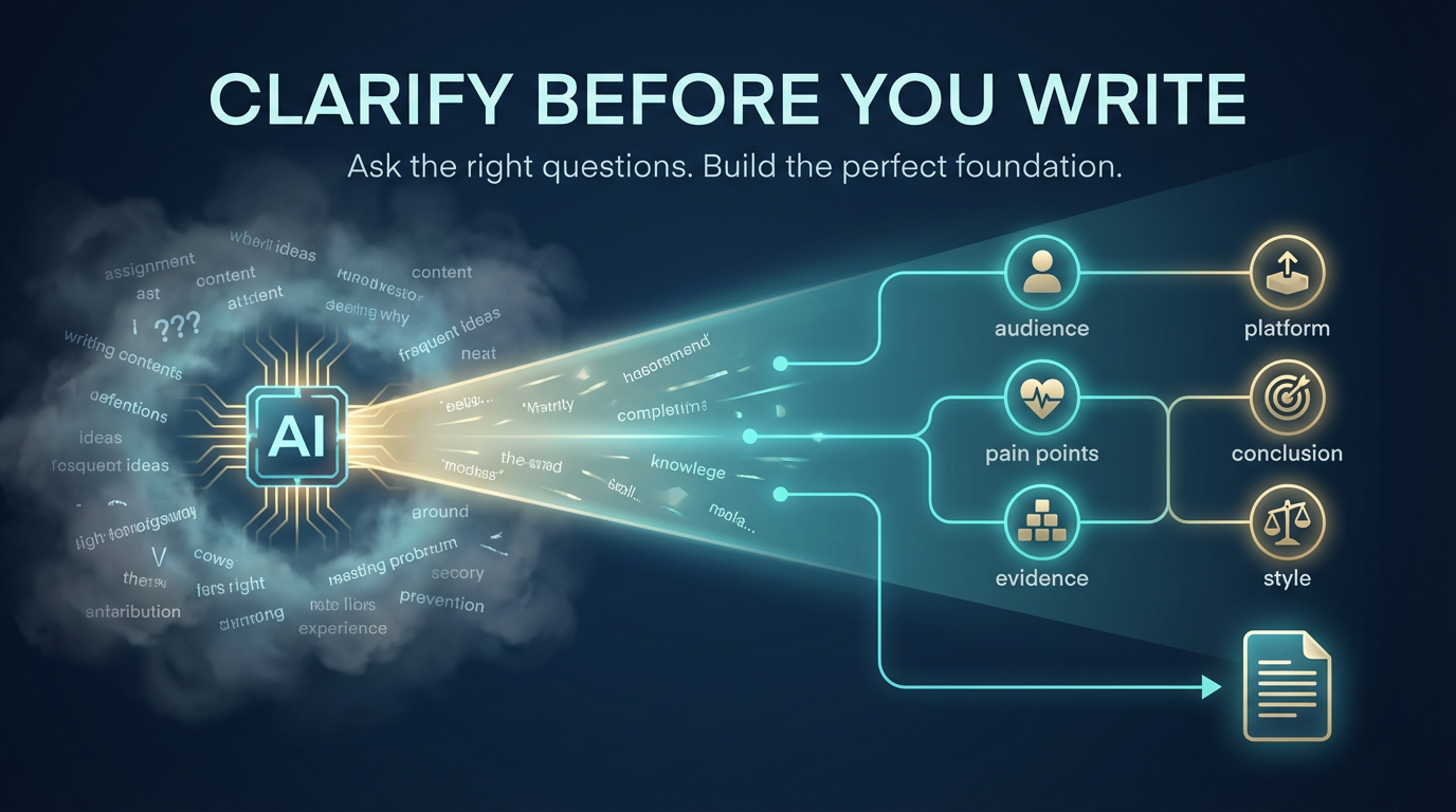 Before you begin any writing, ask the user questions to clarify things.