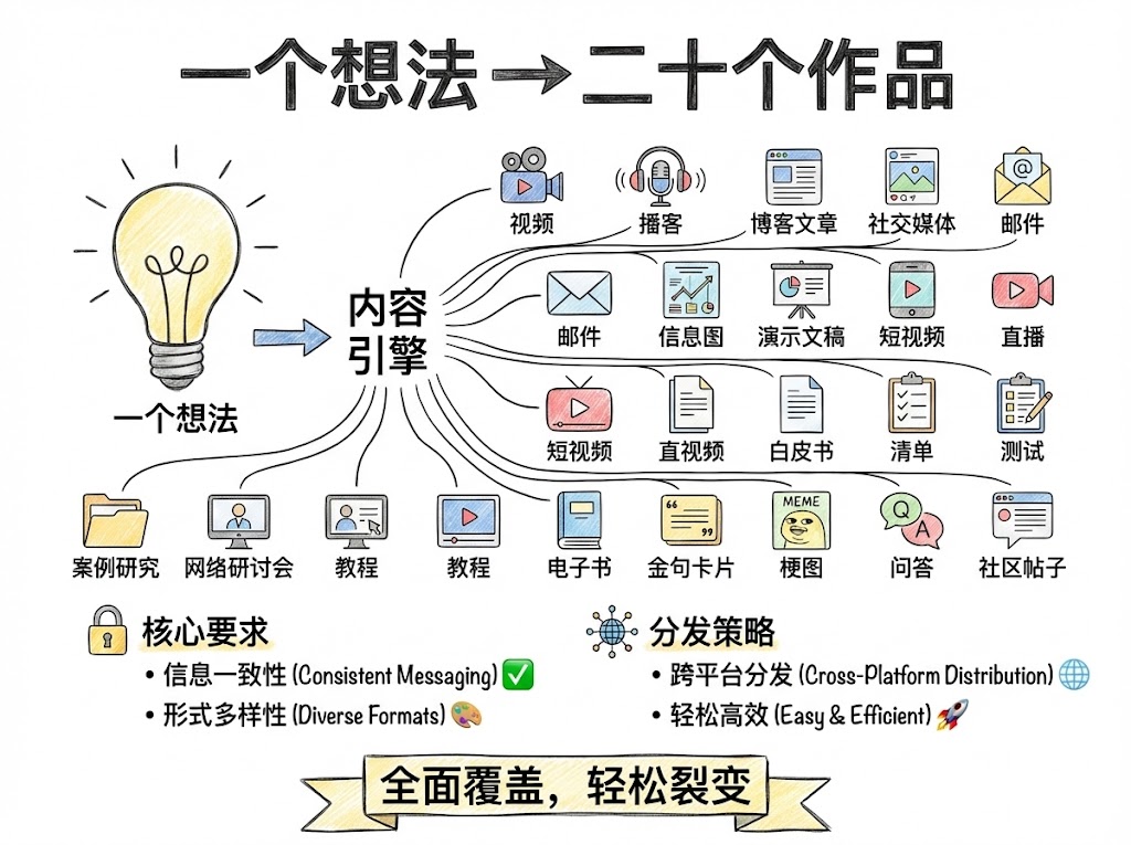 Transform one idea into twenty different content creations. Maintain a consistent message while employing diverse formats to easily distribute content across all platforms.