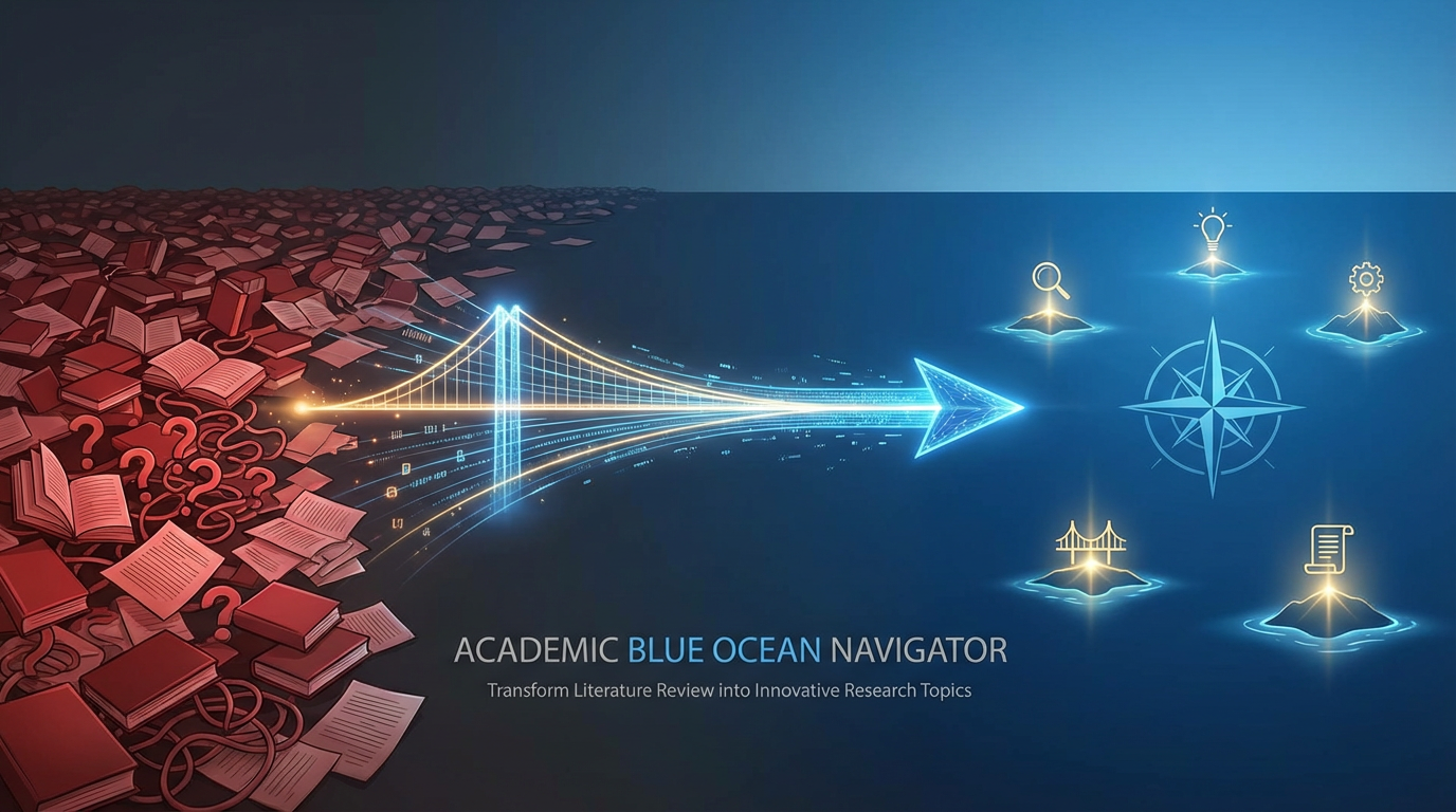Input research topics and apply the Blue Ocean Strategy to innovate academic research topics.