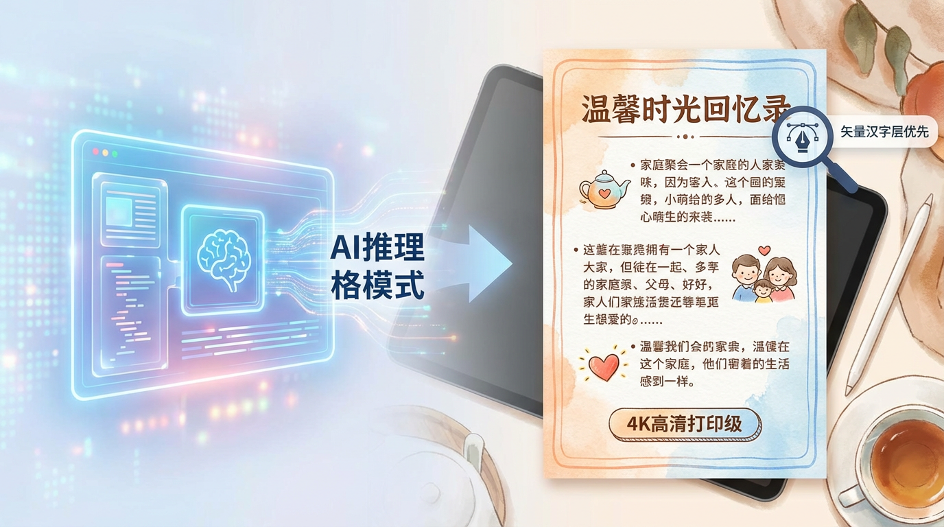 Transform complex content into warm hand-drawn information cards. Automatically summarize titles, beautifully typeset, 4K high definition, strong recognition of Chinese characters, and greatly increased information retrieval efficiency.