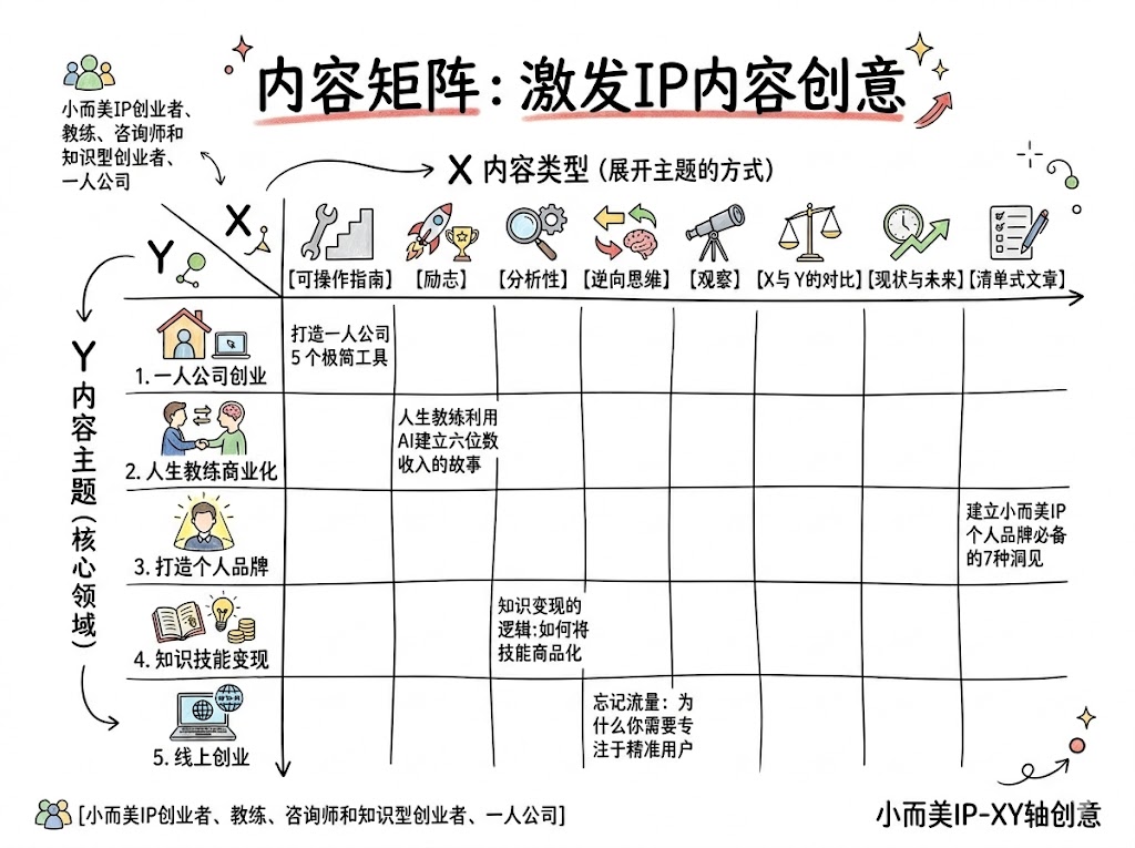 To spark creativity, provide topics, and create a "content matrix" table. The X-axis of this table contains content types, i.e., the ways to expand a topic; the Y-axis contains content topics that need to match the X-axis.