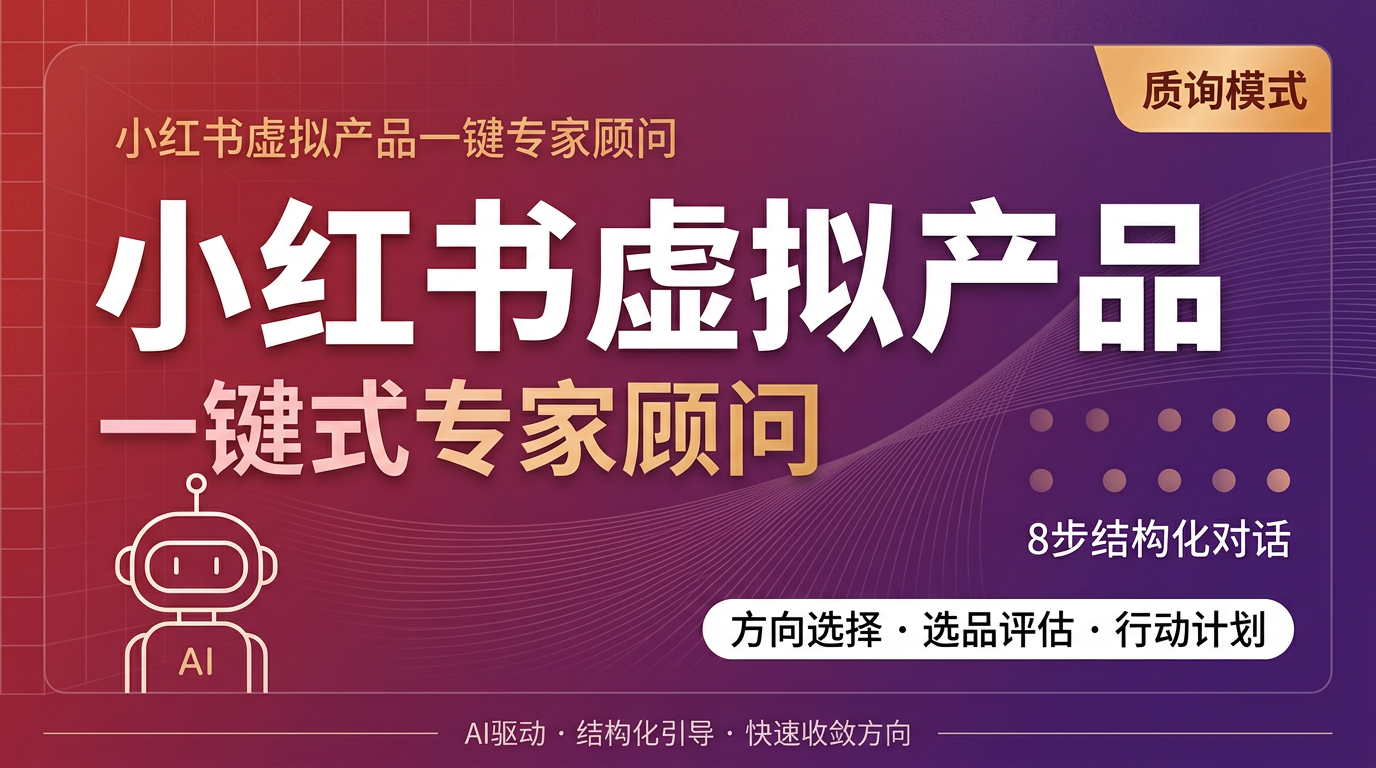 A one-click expert consultant designed for users who want to create virtual products on Xiaohongshu. Once activated, the AI will act as a senior virtual product consultant on Xiaohongshu, guiding users through the entire process from direction selection, product evaluation to action planning via an 8-step structured dialogue. It includes a built-in 'Inquiry Mode' that can continuously question and quantitatively assess the user's initial direction, helping to quickly converge on a direction and avoid blind investment.