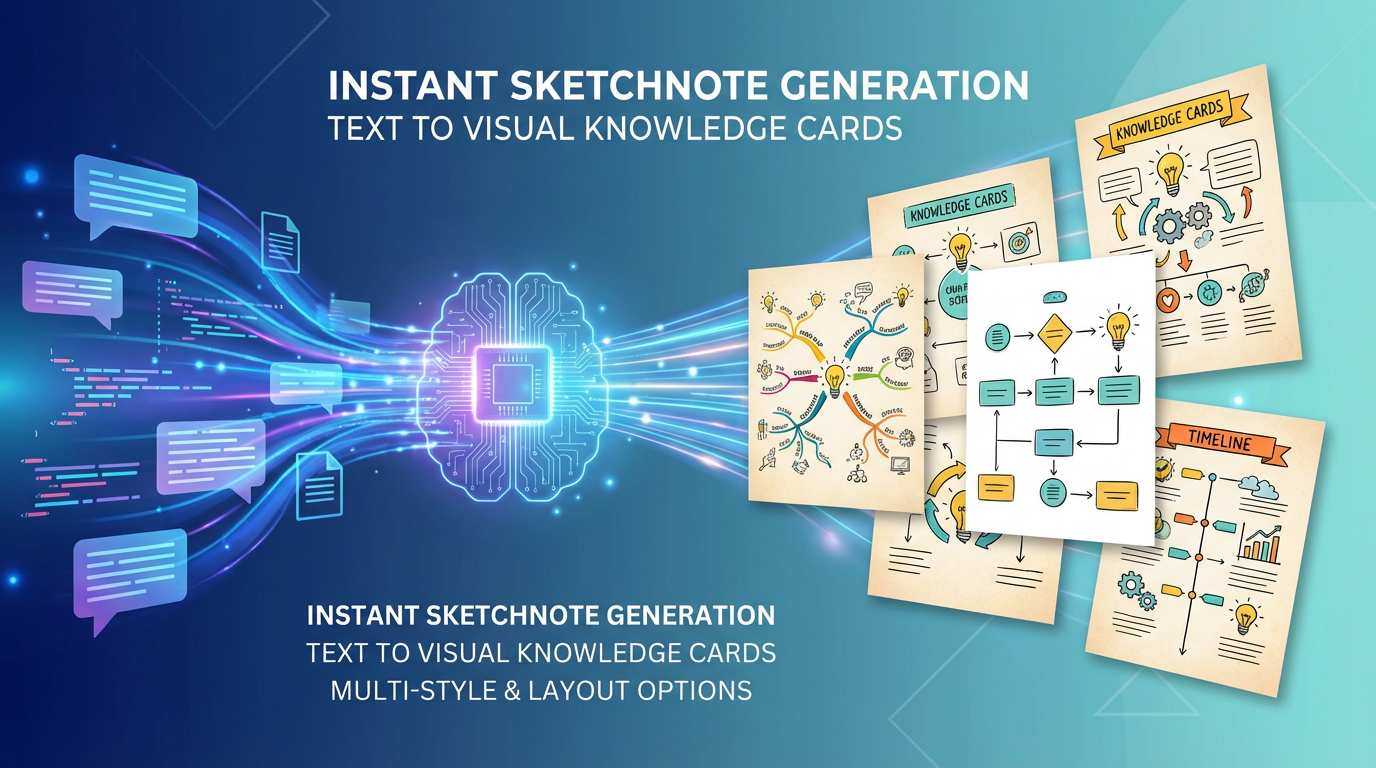 This tool transforms text content into hand-drawn style knowledge cards with illustrated prompts, supports multi-image splitting and style customization, and is suitable for sharing on social media platforms such as Xiaohongshu.