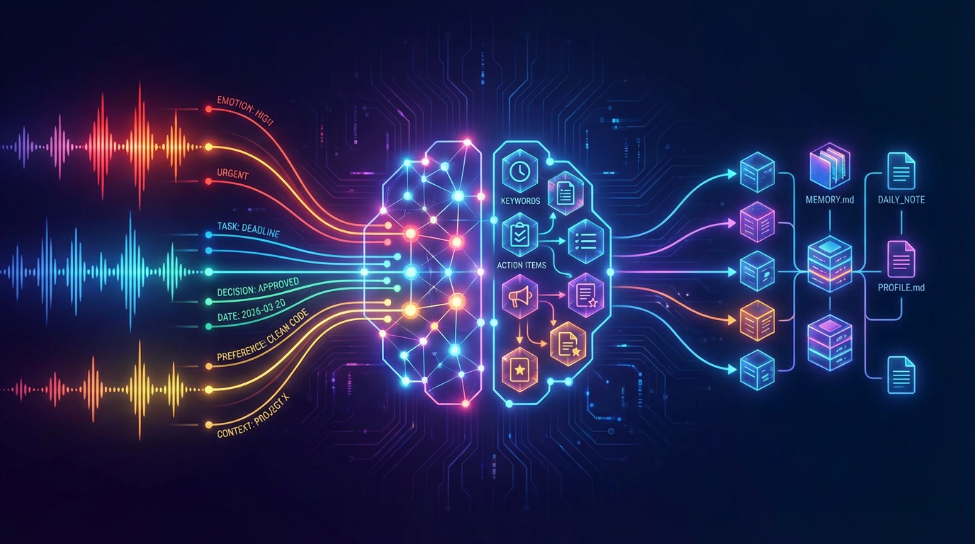 Enable AI to identify facts, preferences, goals, and implicit key points in general conversations, just like a serious audience member. First, present structured candidate key points, and then write high-confidence, reusable information into memory securely, avoiding over-inference, misremembering, and hasty overwriting of old memories.