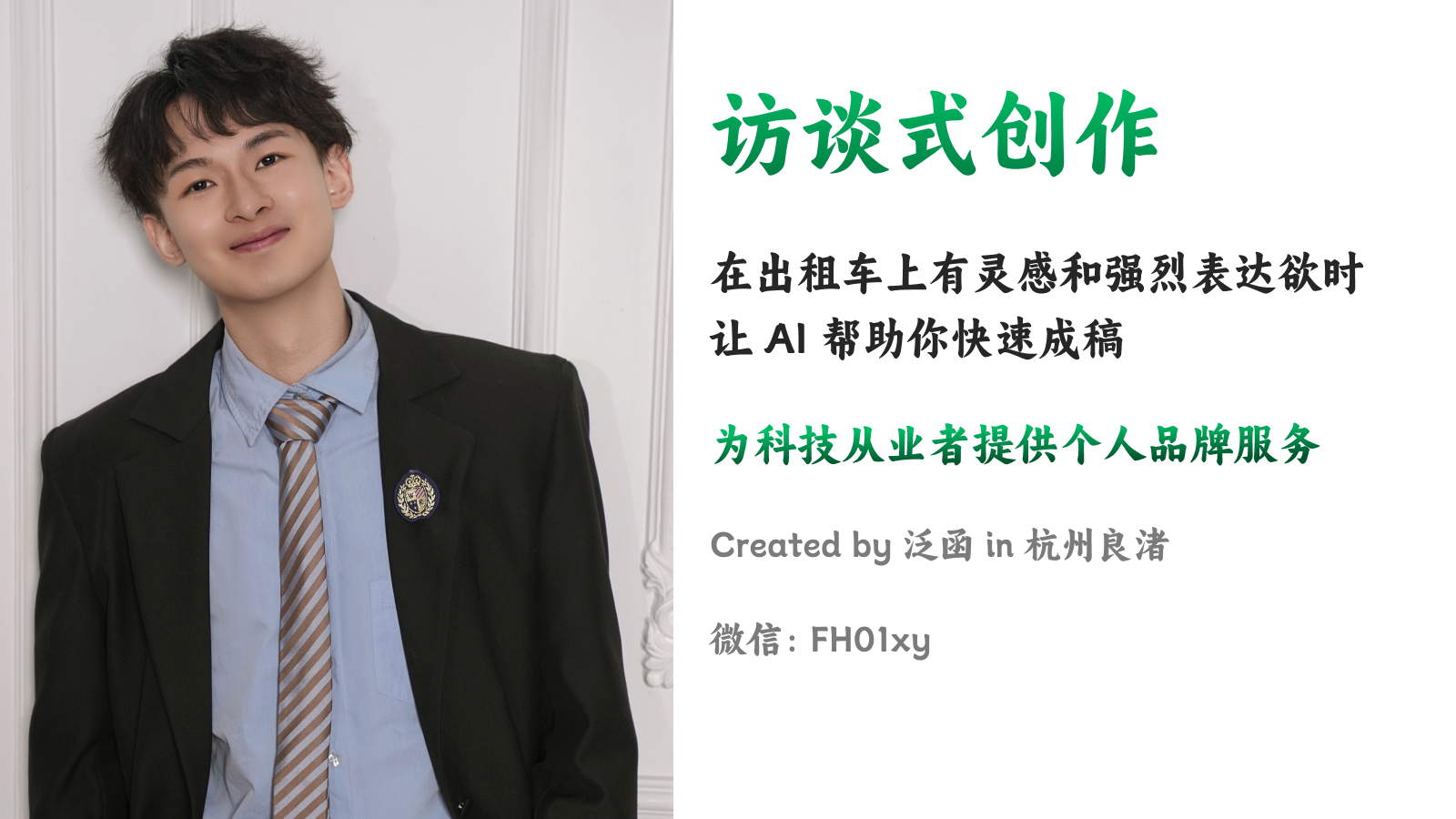 通过深度一对一访谈,帮助用户理清创作思路、挖掘素材,最终完成高质量文章。基于默会知识理论和IP表达方法论,每次只问一个问题持续挖掘,输出详细大纲供确认后完成写作。
