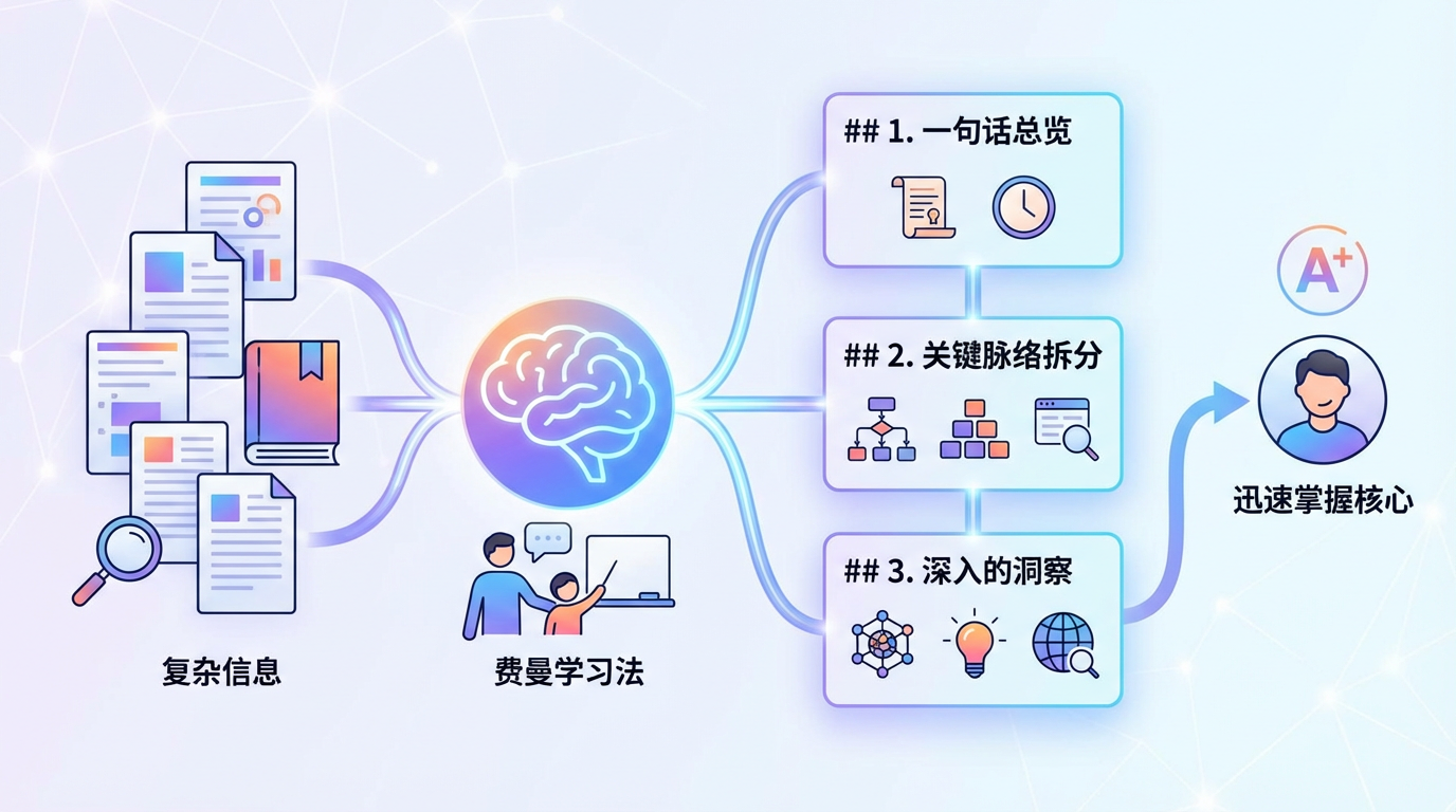Based on the Feynman Learning Technique, this method helps you quickly understand the structure of an article, the author's viewpoint, and key evidence. It is suitable for analyzing and learning from long articles, videos, and podcasts that present viewpoints and provide event analysis.