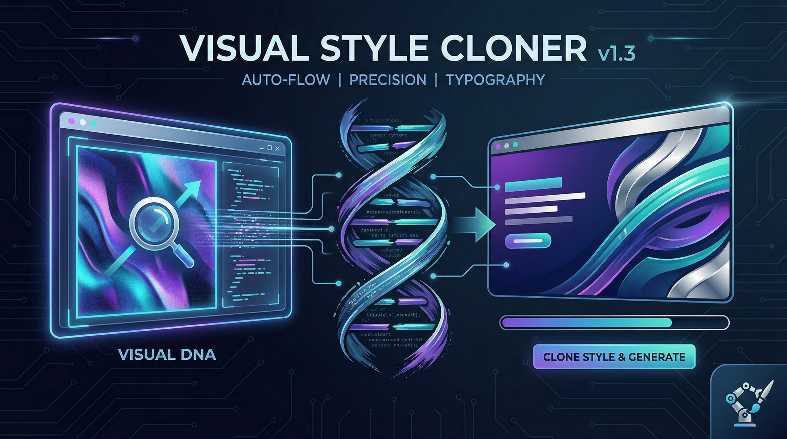 Clone any visual style and easily apply it to new themes. Your design DNA, generated with one click, perfectly replicated.