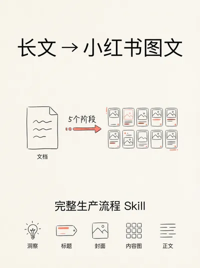 Version: v1.0 Creation Date: 2026-02-07 Applicable Scenarios: Converting long articles/tweets into Xiaohongshu image and text notes. Version 2.0 Creation Date: 2026-02-08 Adjusted the constraint on the number of key insights.