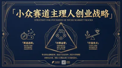 A "cognitive competition"-oriented strategic methodology designed specifically for entrepreneurs in niche markets, applicable to sub-markets in third- and fourth-tier cities. Core formula: Success = Deep Relationships × Unique Value × Sustainable Model. Includes a triangular model (owner is content, location is traffic, community is asset), three strategic paths (small and beautiful, deep value, localization), a four-in-one framework, a site selection evaluation model, and an investment financial indicator library. Applicable sectors: teahouses, floristry, pet supplies, baking, and early morning/late evening dining, etc.