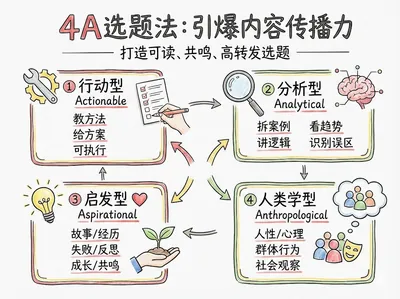 Output topics that are readable, resonant, shareable, and practical on any content platform, and adaptable to different audiences and platforms. We excel at transforming any topic into publishable content with dissemination potential. We generate publishable topic ideas from selected text paragraphs or entire articles from a self-media perspective [4A Framework Explanation (for understanding the generation logic)]: 1️⃣ Actionable (Teaching methods/Providing solutions/Executable) 2️⃣ Analytical (Analyzing cases/Identifying trends/Explaining logic/Identifying pitfalls) 3️⃣ Aspirational (Stories/Experiences/Failures/Reflections/Growth) 4️⃣ Anthropological (Human nature/Psychology/Group behavior/Social observation)
