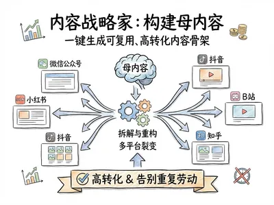 Build master content like a content strategist. Generate reusable, high-converting content frameworks with a single click, easily achieving multi-platform viral growth and eliminating repetitive work.