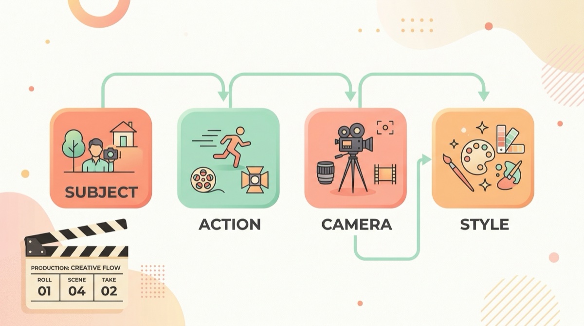 สูตรพรอมต์หลักของ Seedance 2.0: Subject → Action → Camera → Style