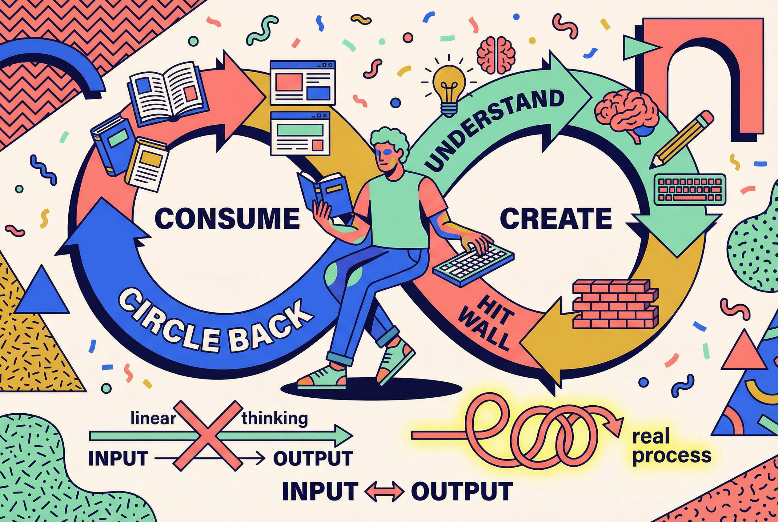 เราถูกกำหนดให้คิดว่า "การป้อนข้อมูล" และ "การส่งออก" เป็นสองขั้นตอนที่แตกต่างกัน โดยที่เราต้องสะสมความรู้ก่อนจึงจะสามารถสร้างสรรค์สิ่งที่มีค่าได้