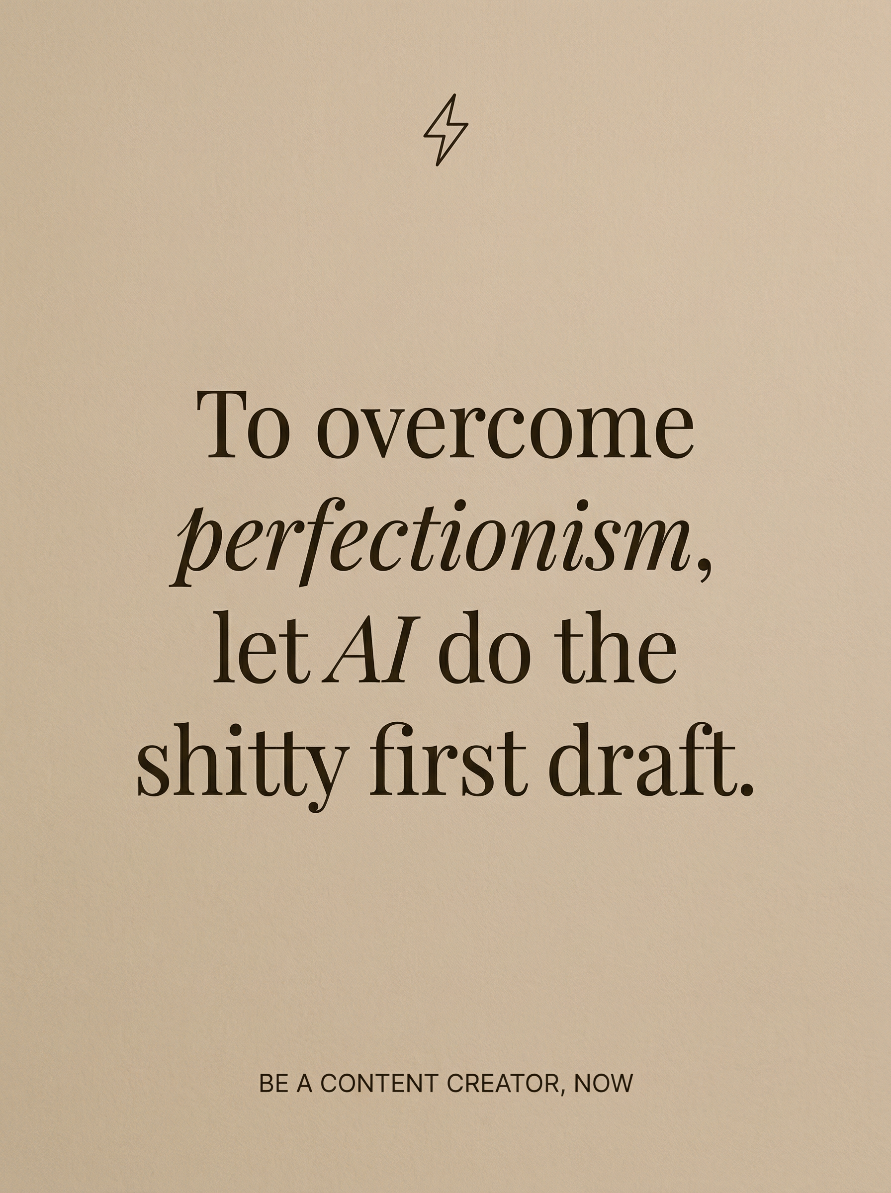 ด้านบน: ไอคอนสายฟ้าขนาดเล็ก (⚡) สีน้ำตาลเข้ม (#2C2416) สไตล์ลายเส้นเรียบง่าย อยู่ตรงกลางใกล้ด้านบน