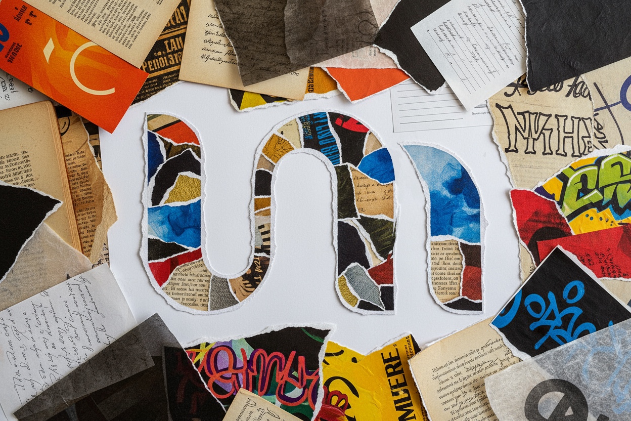 - 底层:不同风格的纸张散落、堆叠、平铺
