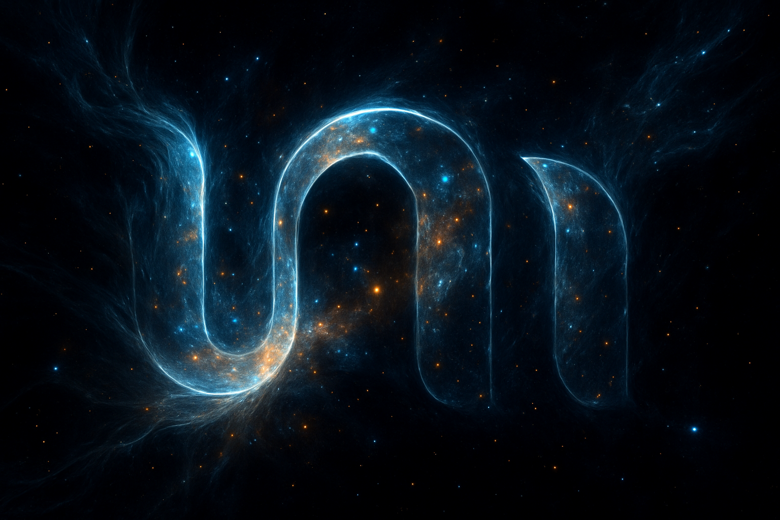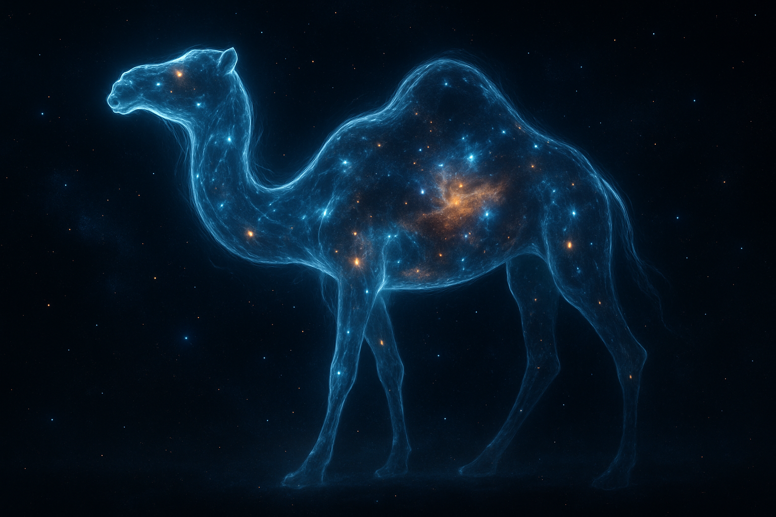- 主体:轮廓由明亮的白色和蓝色光线勾勒,内部点缀金色、橙色和青色星点