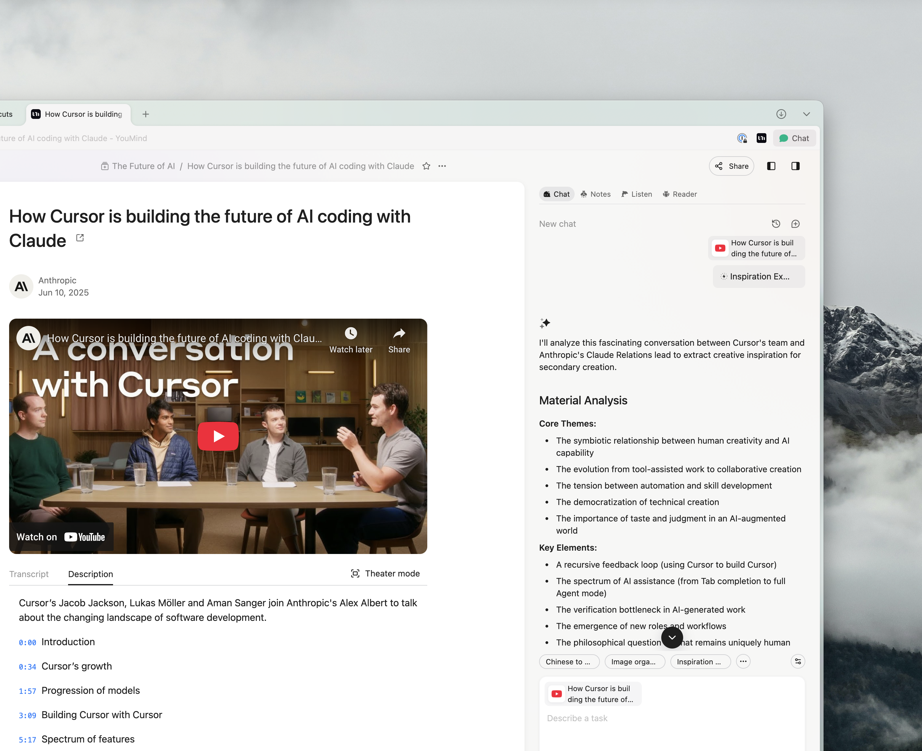 - Extract core themes, concepts, and emotional undertones from the provided material