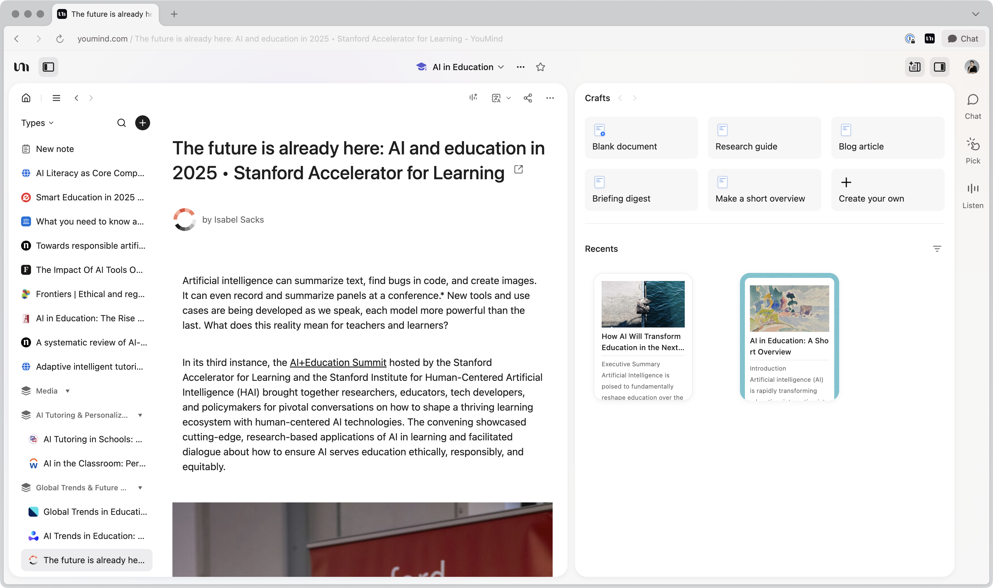 We’ve added Templates to Craft. Open Craft and pick a preset template at the top to generate a draft in one click, or create your own to fit your materials and goals. Next, we’ll support more output types beyond documents so your ideas can take the form that fits best.