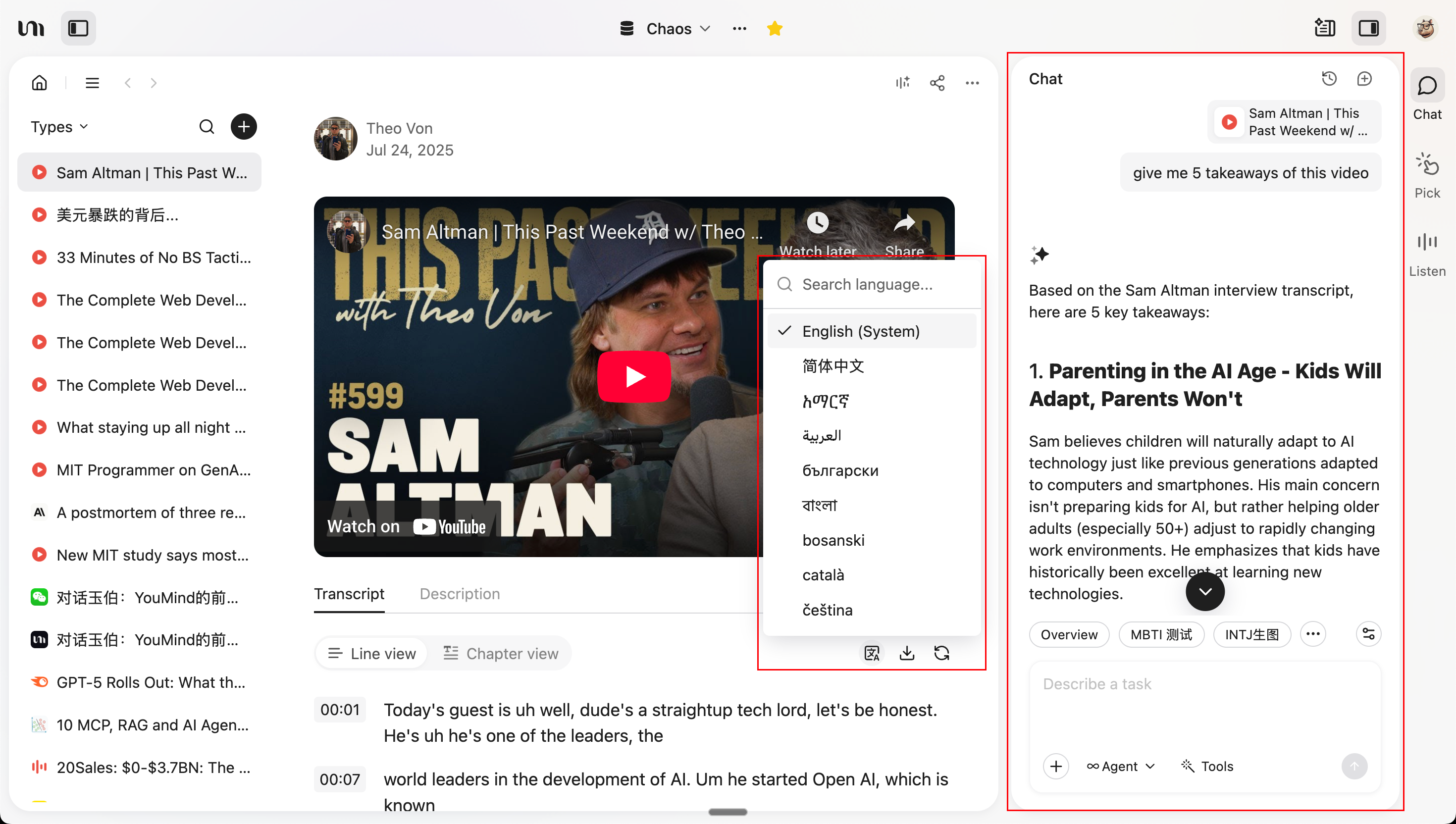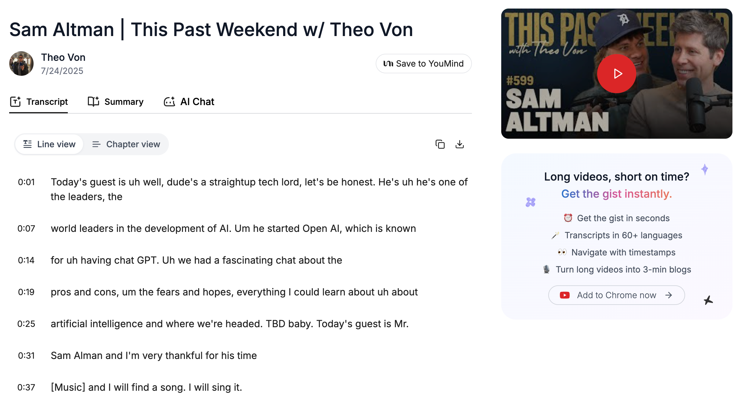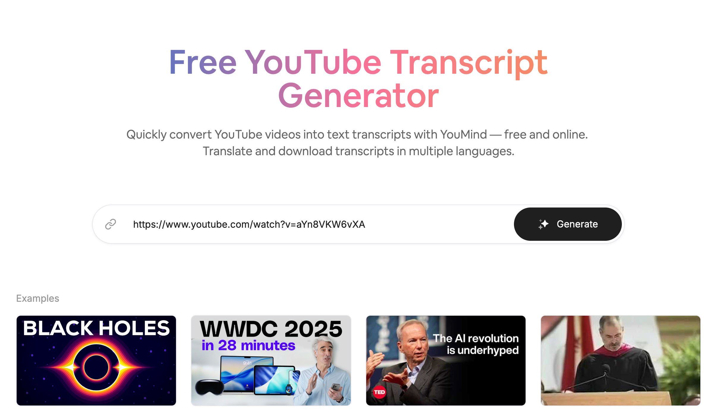 立即尝试——只需粘贴一个YouTube链接,即可体验从视频到文本,再从文本到洞察的无缝转换。