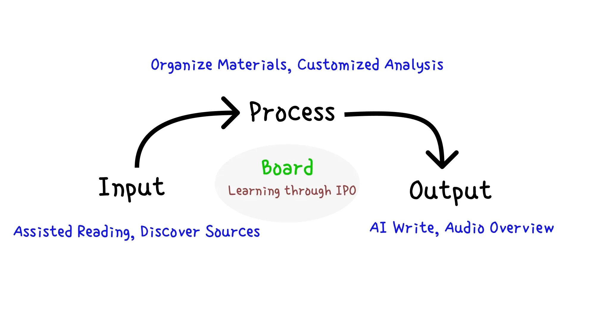 正是这些缺陷,让我在构思 YouMind 的初始框架时,产生了一个核心想法:YouMind 不仅仅是一个具有孤立功能的工具,而是一个围绕 IPO 模型构建的全新知识学习过程或方法。